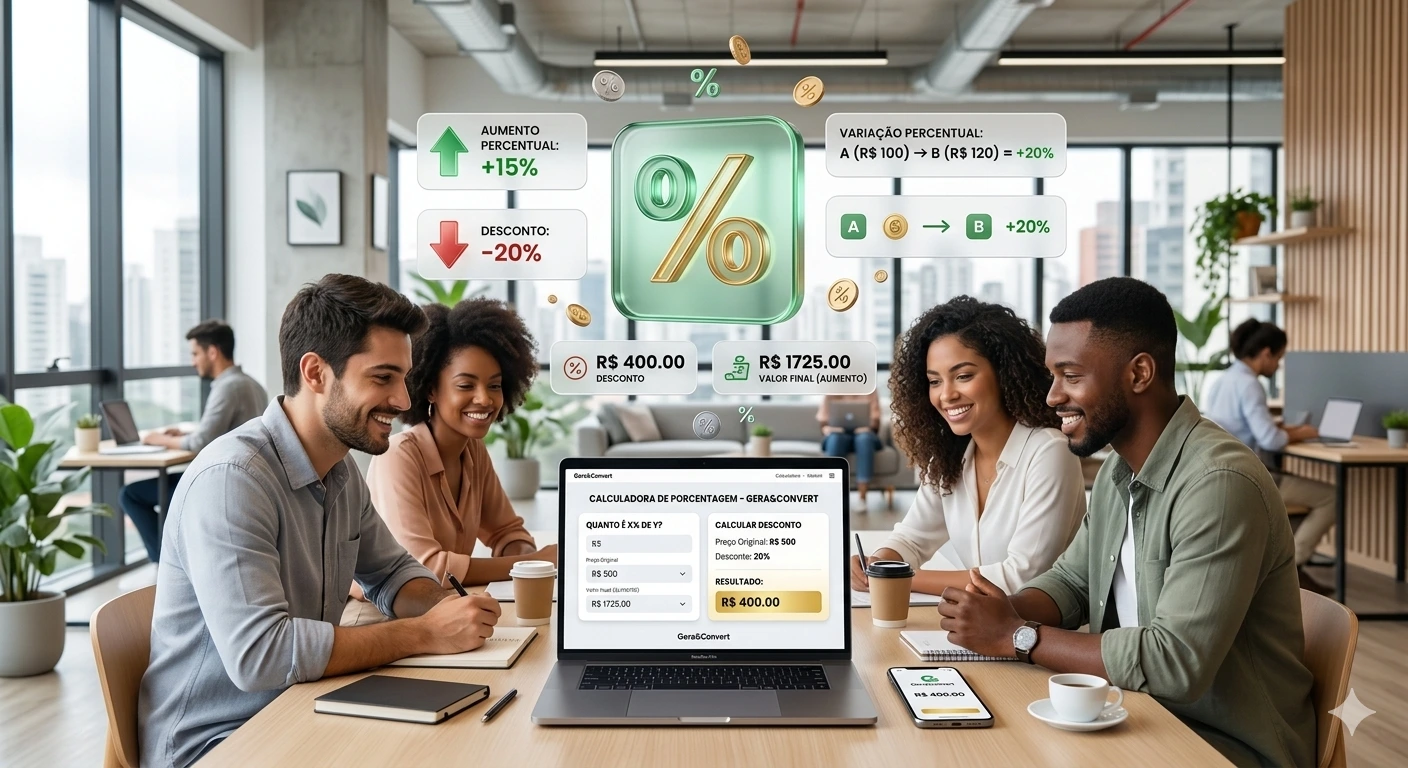 No Gera&Convert, criamos a Calculadora de Porcentagem Completa. Uma ferramenta multifuncional que resolve desde as contas mais simples até aquelas variações percentuais que dão nó no cérebro.