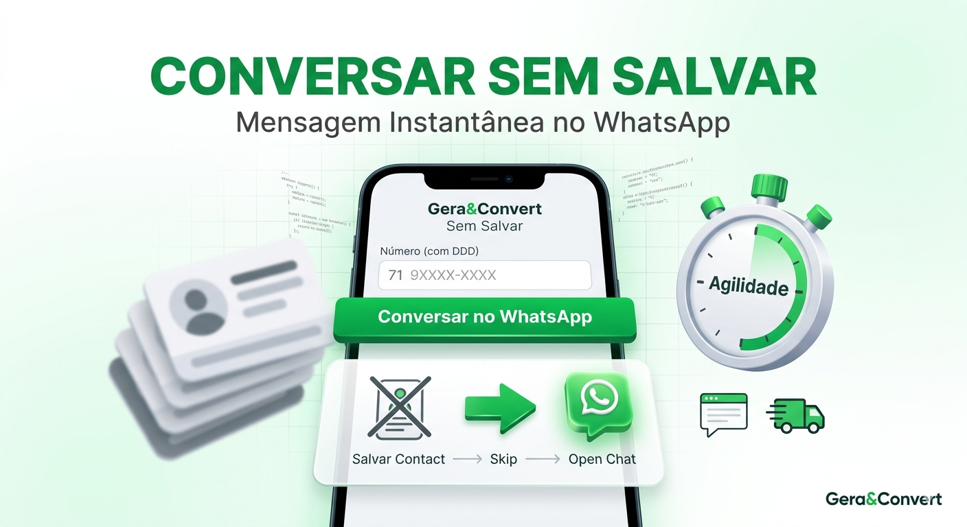 Se você faz atendimento no WhatsApp (X1), use essa ferramenta para abordar rapidamente leads que chegam por outros canais (como direct do Insta ou e-mail), sem “sujar” o celular da empresa com centenas de contatos não qualificados. No Gera&Convert, entregamos a ponte mais curta entre você e o seu cliente.